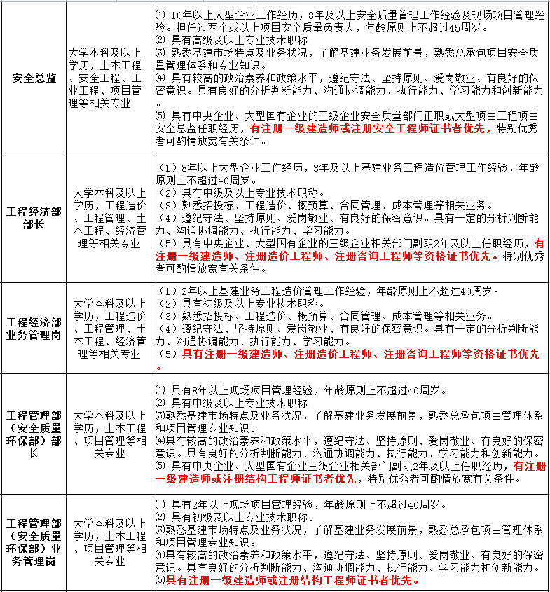 根據中化學建設投資集團有限公司有關規定,結合本次公開招聘崗位職責要求,應聘人員應符合以下條件: