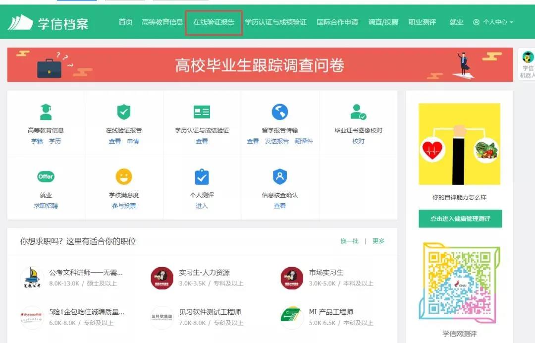 第二步,成功登錄后,點擊頂部菜單中的“在線驗證報告”欄目。