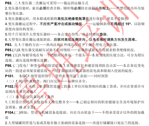 P140. 一、 1.(1)設計文件要求或規范規定脫脂 ……( 8)取源部件安裝完畢后,應與設備和管道同時進行壓力試驗。( 8 點全是)