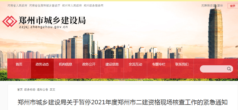 緊急通知:鄭州暫停2021年二級建造師現場資格審