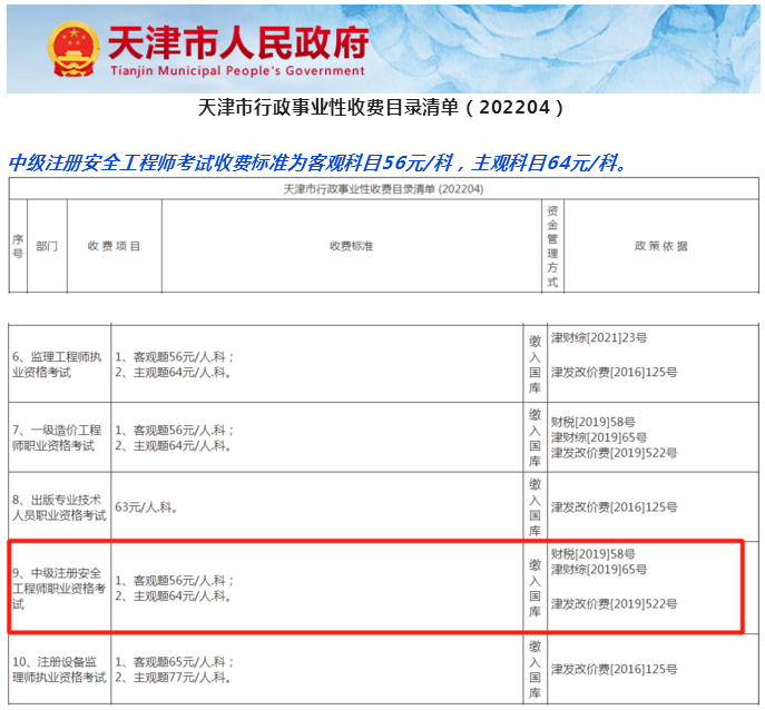 繼山西、海南、重慶三地后,近日,天津、山東羅莊兩地2022年中級安全工程師等考試收費(fèi)清單也已發(fā)布!
