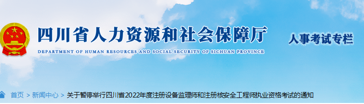 關于暫停舉行四川省2022年度注冊設備監(jiān)理師和注冊核安全工程師執(zhí)業(yè)資格考試的通知