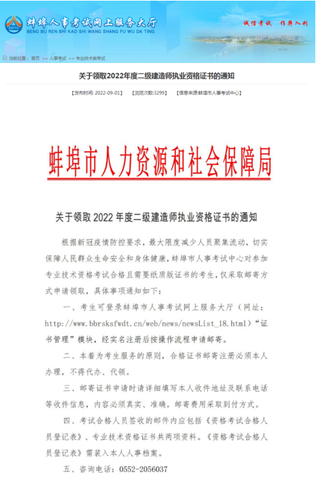 安徽蚌埠:2022年二建證可以領(lǐng)了