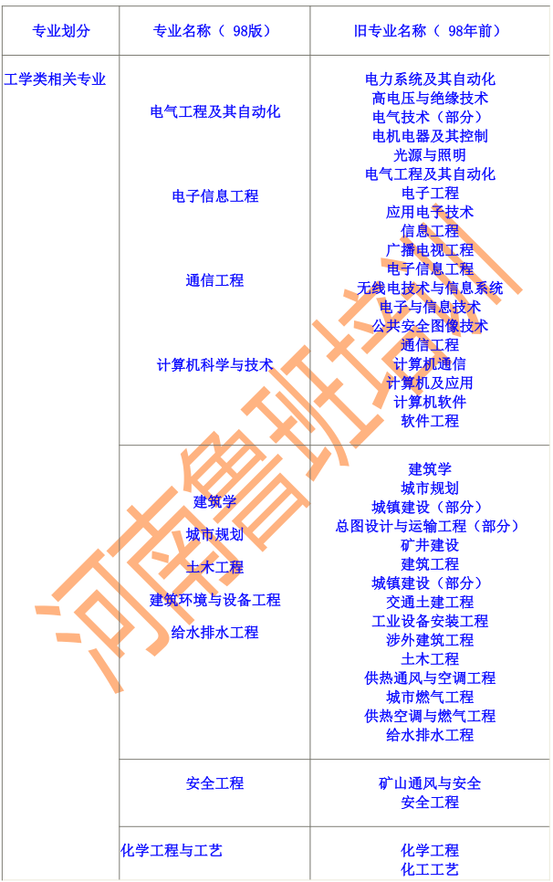注冊消防工程師相關專業新舊對照表