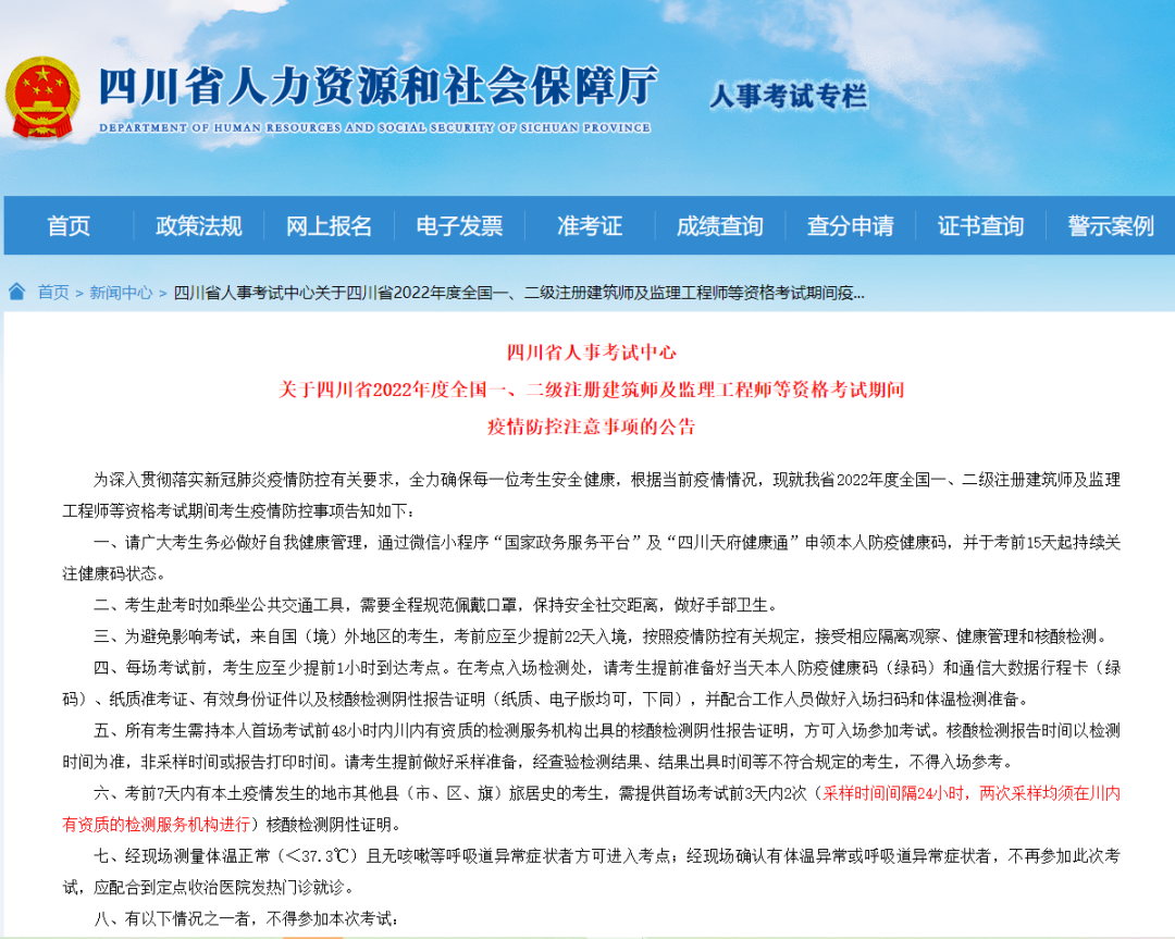 4月20日,四川省人事考試網(wǎng)發(fā)布關于四川省2022年度全國一、二級注冊建筑師及監(jiān)理工程師等資格考試期間疫情防控注意事項的公告,這就給相關考生一顆“定心丸”,根據(jù)目前疫情形式,如后續(xù)能繼續(xù)保持低風險,四川省一、二級建筑師及監(jiān)理工程師考試大概率不會延期和取消。考生專心備考。