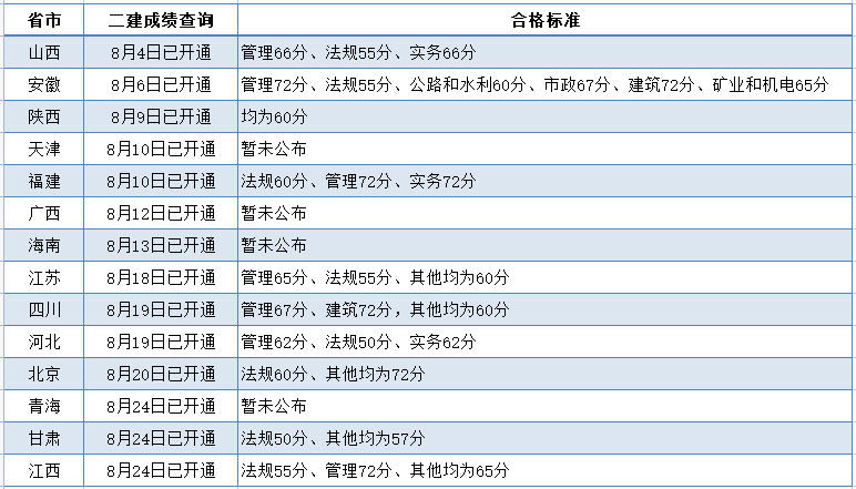 8月份是二建成績查詢的高峰期,截止目前,共有14地二建成績可查,最新匯總如下。