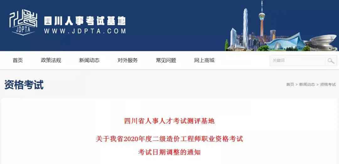 我省2020年度二級造價(jià)工程師職業(yè)資格考試其他考試相關(guān)事宜,按《四川省人力資源和社會保障廳關(guān)于做好我省2020年度二級造價(jià)工程師職業(yè)資格考試考務(wù)工作的通知》(川人社函〔2020〕655號)、《四川省2020年度二級造價(jià)工程師職業(yè)資格考試考試須知》執(zhí)行。該項(xiàng)考試期間疫情防控注意事項(xiàng)將根據(jù)上級部門的要求和部署另行公告,請關(guān)注四川省人力資源和社會保障廳官網(wǎng)(http://rst.sc.gov.cn)“人事考試”專欄和四川人事考試基地網(wǎng)(http://www.jdpta.com)。