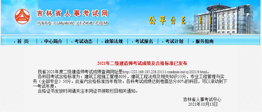 今日,吉林省發(fā)布通知《2021年二級建造師考試成績及合格標準已發(fā)布》。發(fā)布各科目考試合格標準為:建筑工程施工管理60分,建筑工程法規(guī)及相關(guān)知識55分,專業(yè)工程管理與實務(wù)(全部專業(yè))50分。此省內(nèi)合格標準當年有效。各科考試成績達到卷面總分60%的科目,可以滾動到下一考試年度。