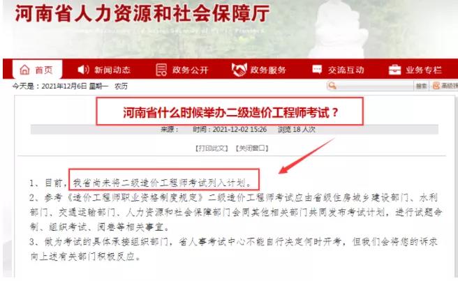河南人社廳回復(fù):河南省什么時(shí)候舉辦二級(jí)造價(jià)