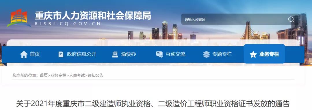 2021年度重慶市二級建造師執(zhí)業(yè)資格、二級造價工程師職業(yè)資格證書即將送達我市,為落實疫情防控要求,減少人員聚集,證書采取郵寄方式發(fā)放,現(xiàn)將有關(guān)事項通告如下: