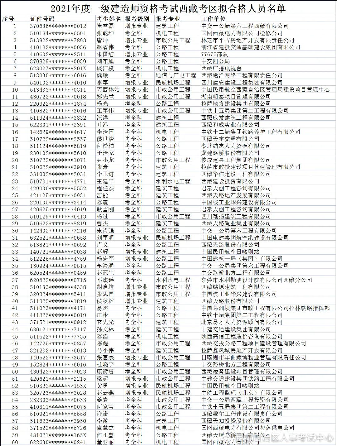 廣西2021年度一級建造師資格考試成績擬合格人員公示