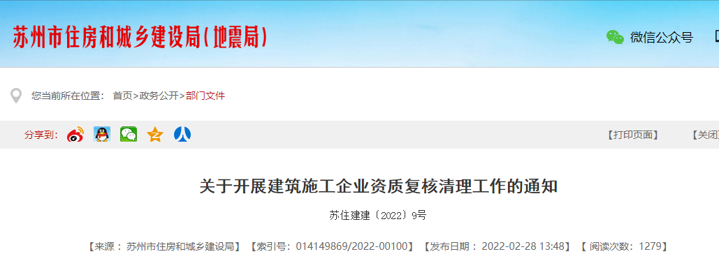 蘇州:對189家施工企業(yè)資質進行復核清理!