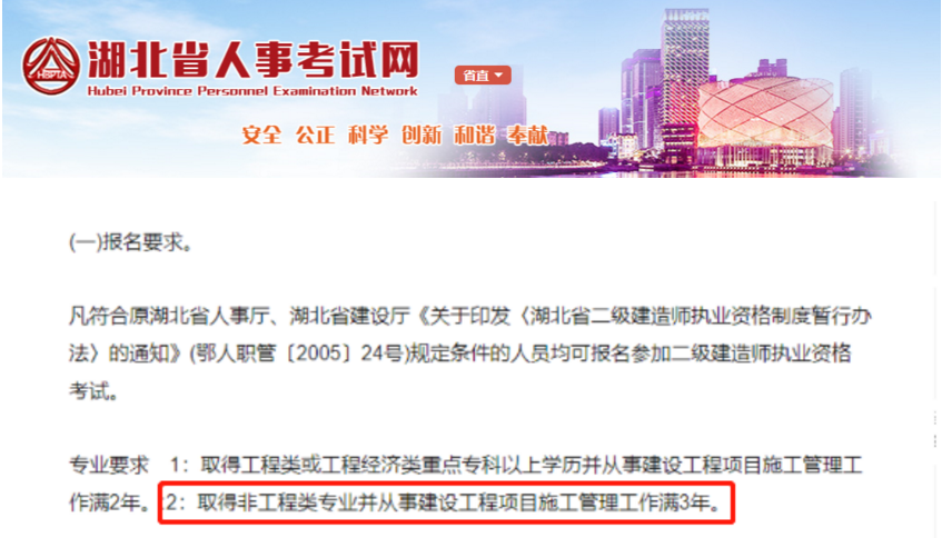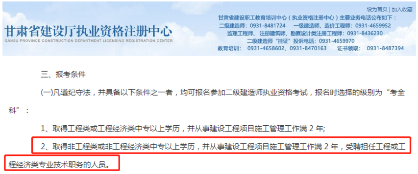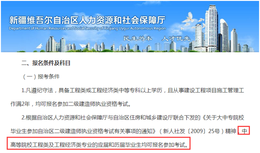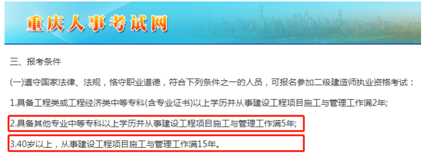 1、中等專科及以上學歷且所學專業為非工程或非工程經濟類的,需同時滿足以下條件:從事建設工程項目施工管理工作滿5年,具有西藏戶籍或在藏建設行業企事業單位工作,且近兩年內在藏連續繳納社會保險滿12個月。