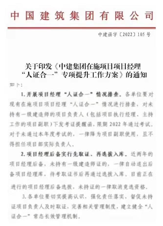 中建集團(tuán):未取得建造師證,全部降為項(xiàng)目副職