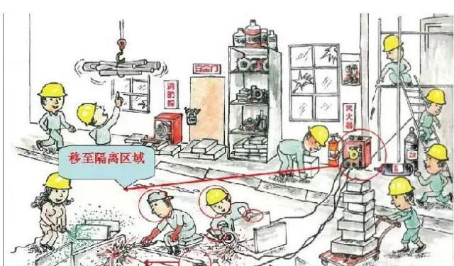 47、噴涂料、電焊、打磨交叉作業,須有效隔離開