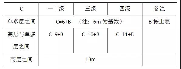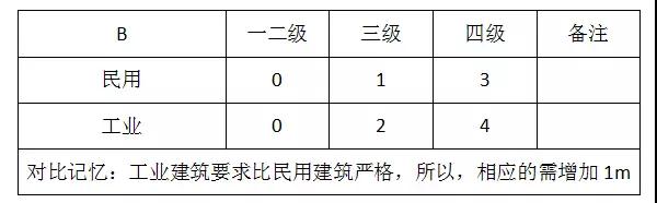 1.GB50016中民用建筑的防火間距,只要記住高層建筑之間13m,單多層一二級之間6m,這兩個數(shù)字即可,對照工業(yè)建筑防火間距C=A+B的計算公式,按下表取值計算,既可以記憶民用建筑的防火間距,同時又可以記住工業(yè)建筑的防火間距,做到一舉兩得。