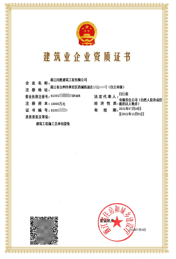 浙江自勝建筑工程有限公司是一家注冊在臺州市的建筑工程企業,公司成立于2021年2月5日,于2021年7月16日獲批建筑工程施工總承包壹級資質,2021年7月24日向臺州市中級人民法院申請破產清算。