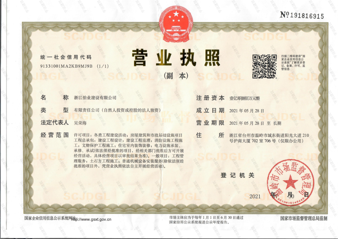 從介紹來看,浙江怡業建設有限公司于2021年9月18日獲批建筑工程施工總承包壹級資質;該資質有效期至2021年12月31日。近期出現不能清償到期債務且明顯缺乏清償能力。